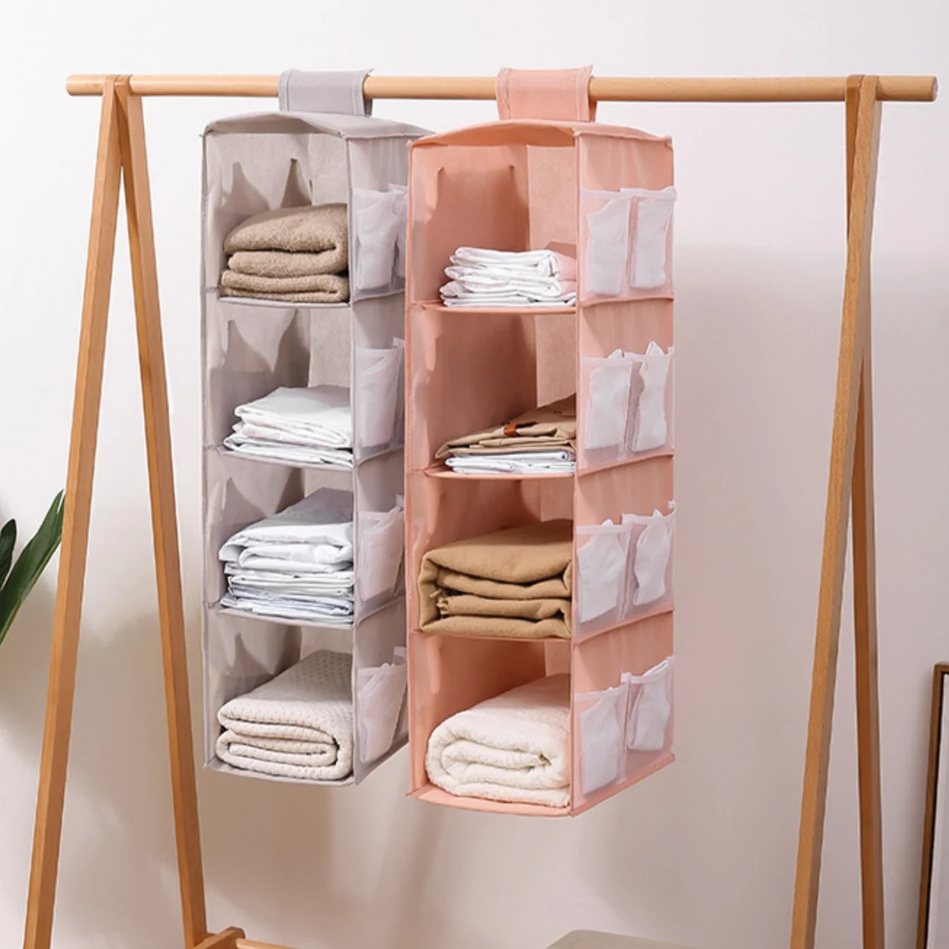 A practical and space-saving solution for everyday storage, this hanging wardrobe organizer is perfect for keeping your essentials tidy and within reach.