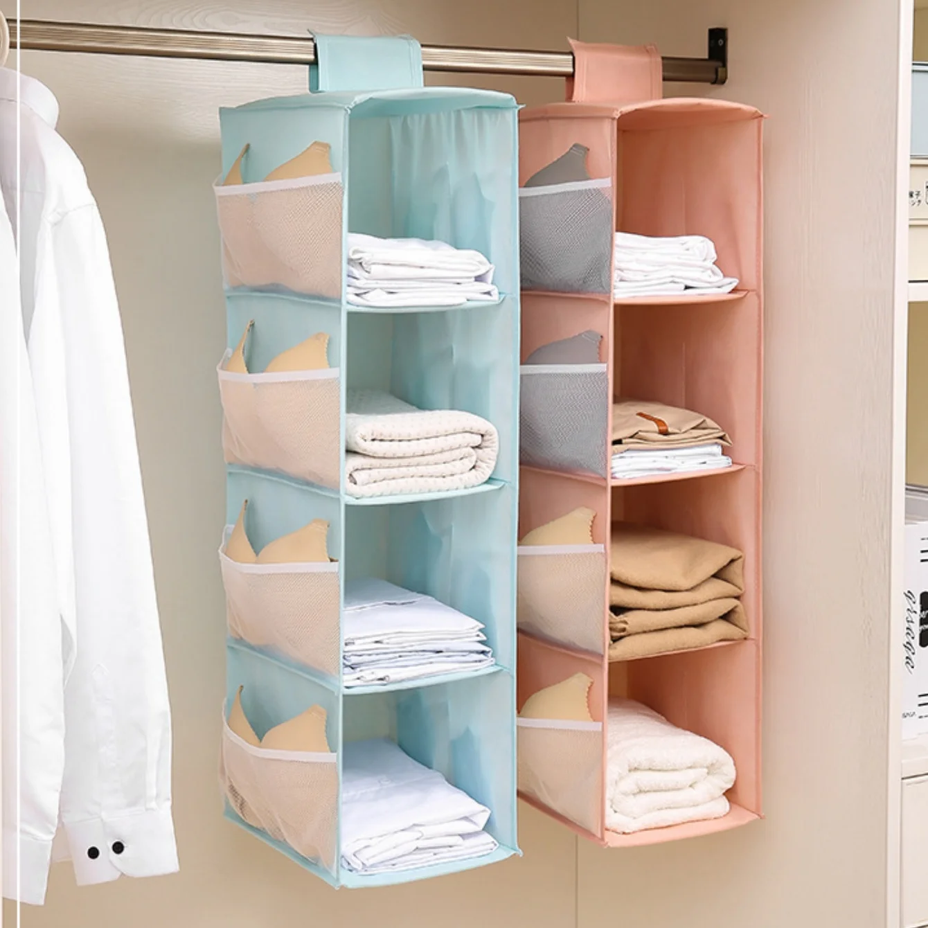 The multi-layer design maximizes vertical closet space, making it ideal for bedrooms, dorms, and compact wardrobes. Simply hang it on a closet rod or hook for instant organization without taking up shelf space. The foldable structure allows for easy storage when not in use.